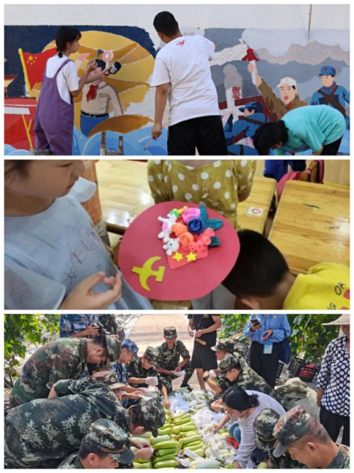 机械工程学院、电气工程学院“乡约南塘,助力振兴”社会实践团为当地村民宣讲安全用电知识,发放安全用电知识手册,并对用电安全问题提出解决方法。信息工程学院“勇担青春使命,播种科技梦想”社会实践团赴南昌市新建县长堎镇开展科技知识普及活动,增强当地居民对科技发展的认知与理解,引导居民充分利用现代科学技术手段提升农业生产水平、发展智慧农业。经济贸易学院“学党史守初心 服务乡村振兴”社会实践团赴江西省鹰潭市余江区张公桥,以发放宣传单、张贴海报、开展宣传会等形式为当地村民普及防诈骗、反邪教知识等。水利与生态工程学院节水灌溉调研实践团赴宜春市彬江镇彬霞村诚信菜园,对当地温室采摘区大棚内土壤进行采样分析,用专业知识帮助当地居民合理高效生产,提高农作物产量。工商管理学院“红星闪闪”社会实践团赴黄马乡南安村开展电商公益培训,学院刘海明博士作专题辅导讲座,鼓励村民充分运用电商平台,扩大黄马乡富硒白莲等特色产业资源优势。理学院新农村建设水平对农村山塘水管护质量影响调研实践团先后赴黄溪村、杨家坪、谭坑村东浒寨,利用专业仪器测量当地山塘水溶氧量与pH值,调查农村山塘水管护质量影响因素,为当地居民提出保护及改善水质的建议。人文与艺术学院“丹青画卷绘百年,奋楫扬帆谱新篇”社会实践团赴鹰潭市韬奋小镇,在当地墙面上绘就以建党百年历史为蓝本的百米百年党史画卷,将艺术设计融入乡村建设,为推动乡村振兴注入青春“动能”。国际教育学院赣梦支教队赴进贤县阳光城幼儿园开展“支教有梦,用爱护航”活动,对小朋友们进行用电安全和防溺水教育,学唱红色歌曲,并利用手工黏土制作党旗摆件,将红色文化根植于心。士官学院“追忆峥嵘岁月,立志从军报国”社会实践团前往习近平总书记考察过的330蔬菜大棚,帮助菜农套蔬菜售卖保护网袋,切实让农户得实惠。