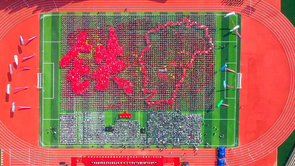 《星辰大海》《二十年后来相会》《赞赞新时代》《青春畅想》……大会开始前,4000名2021级大一新生组成4个巨型方阵,共同唱响昂扬奋进的青春旋律。在万众欢呼中,“贵赣情·校友行”千里接力“风火轮”跑团,与各地校友代表和师生代表,豪迈地迈进大会现场。伴随着热情铿锵的青年学生献词,巨型方阵变换成中国共产党成立100周年庆祝活动标识、中国地图、中国铁路路徽等图案或字样,彰显了全体华交人铁心跟党走、铁肩担使命的赤诚与担当。