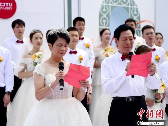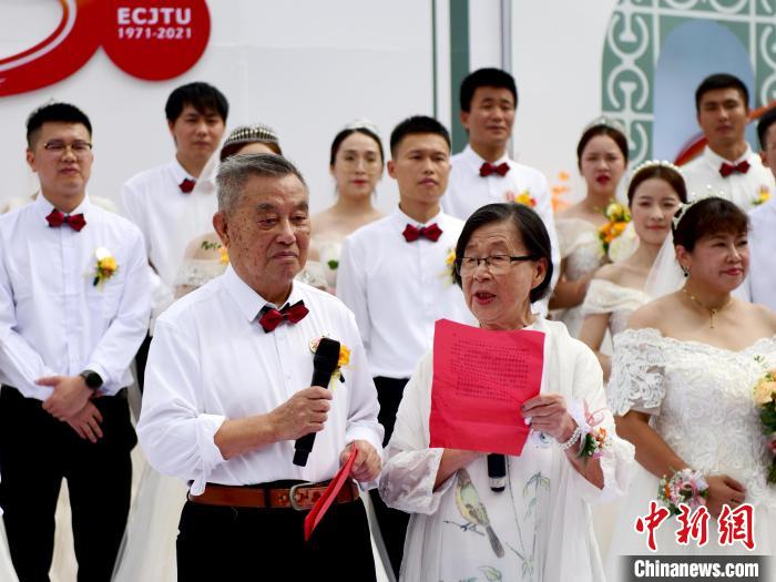 金宗斌、贾瑞珍夫妇作为见证人,为50对伉俪送上祝福。 华东交大供图