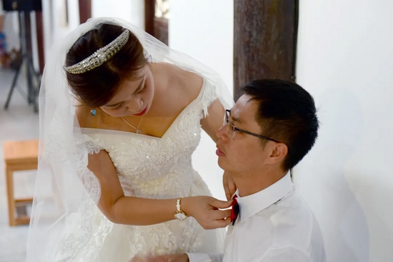 2016级校友王涛与妻子郑丹婷在华交一见倾心、再见定情。“我们的梦想就是回到第一次约会的地方——孔目湖,重温恋爱的时光。”他们含情对视,满眼皆是爱意,“感谢学校提供这次机会,让我们在50周年校庆之际,返校参加这么有纪念意义的婚礼,圆了我们的校园梦!”