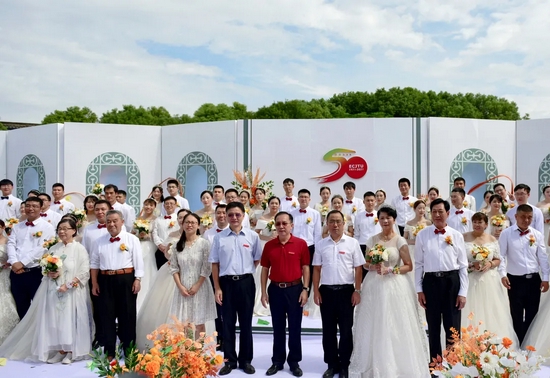 部分校友恩师、全国各地校友代表及在校师生代表共同见证集体婚礼仪式。(通讯员:曾芳香、朱静、王科星)