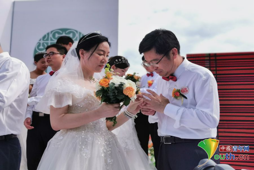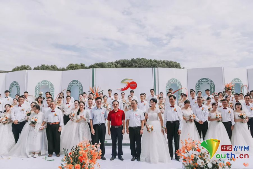 部分校友恩师、全国各地校友代表及华东交大在校师生代表共同见证集体婚礼仪式。(曾芳香 朱静)