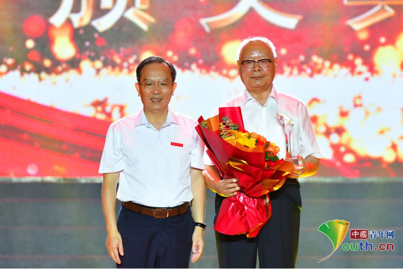 柳和生为“感动花椒人物”建校拓荒人代表颁奖。黄晓鹤 摄