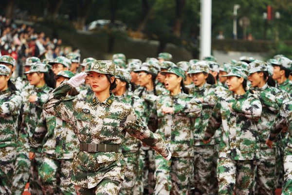 该校党委书记柳和生下达军训汇演开始的指令,军训教官方阵队和16个学院代表方阵队依次通过主席台,接受检阅。他们目光坚毅,步履铿锵,口号嘹亮,现场不时响起雷鸣般的掌声。