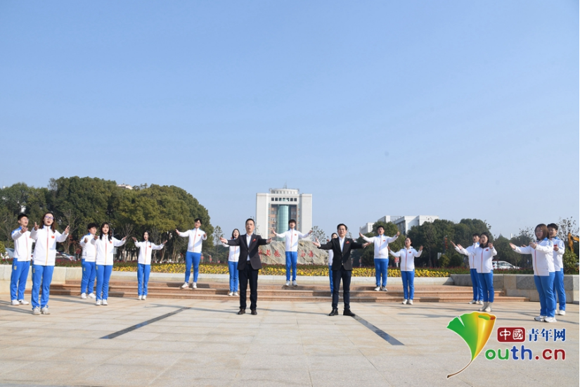 华东交大师生在学校中心广场传唱《领航》。陈君 摄