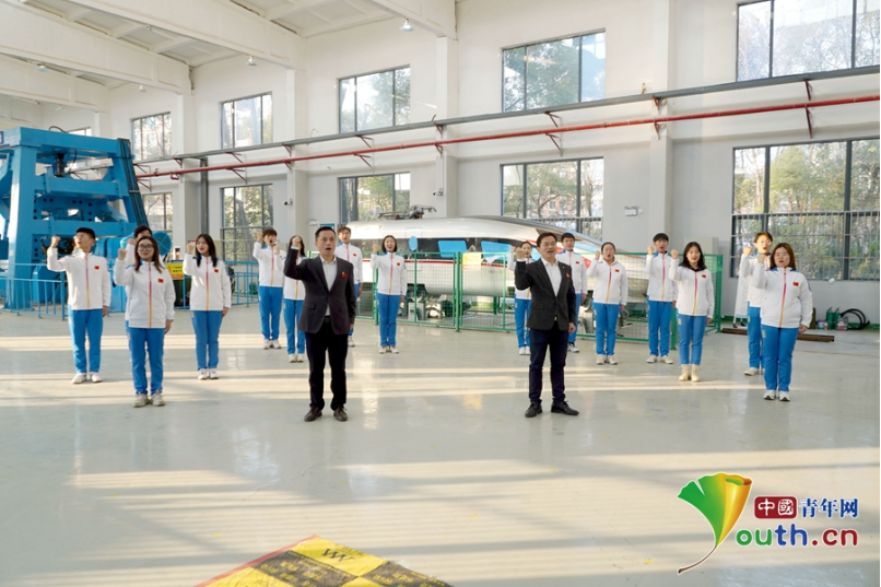 华东交大师生在国家重点实验室传唱《领航》。陈君 摄
