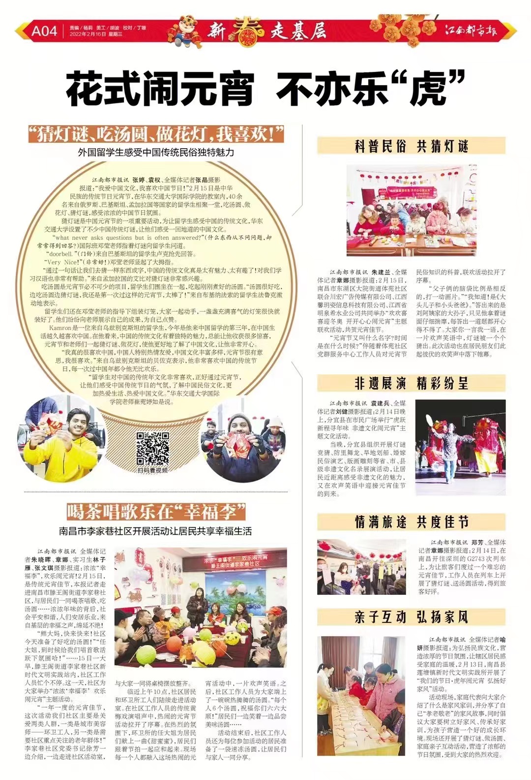 【江南都市报】“猜灯谜、吃汤圆、做花灯、我喜欢!”外国留学生感受中国传统民俗独特魅力