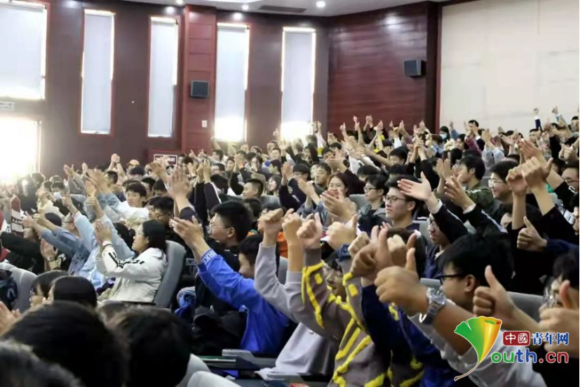 邱娥国同志先进事迹报告会现场学生反响热烈。刘亮亮 摄