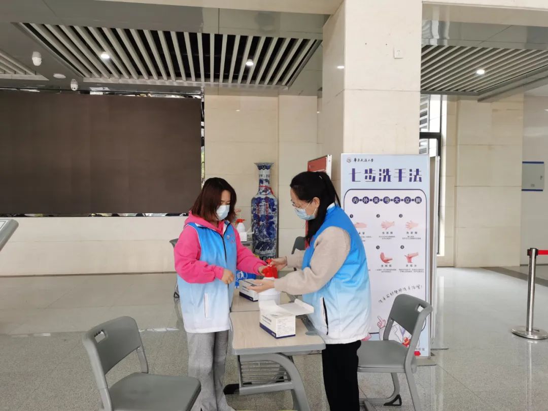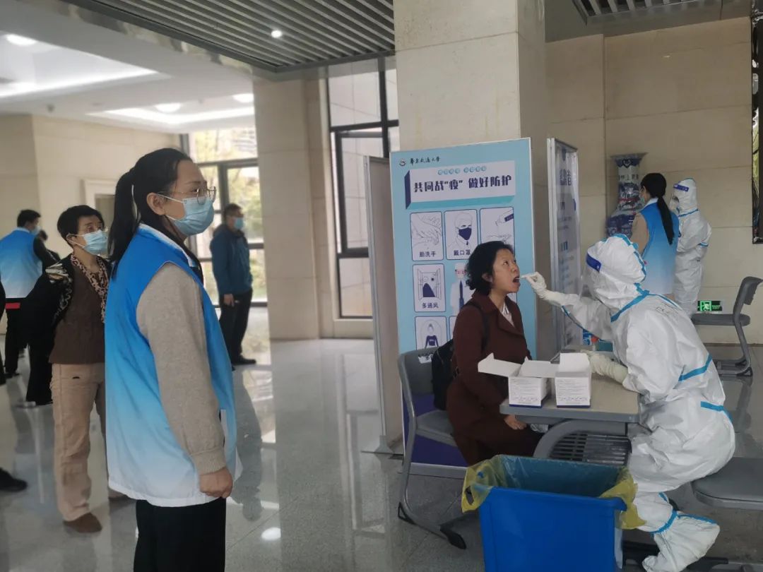 3月19日,学校贯彻落实上级部门有关决策部署和工作要求,迅速面向全体在校人员开展了第二轮核酸检测,进一步筑牢校园疫情防控防线、更加彻底地排除可能存在的传播风险。42名教工志愿者“舍小家,顾大家”,全面协助医护人员开展核酸检测活动,在教25栋顺利完成任务,检测教工、离退休、职工家属、后勤服务人员共计2090人。
