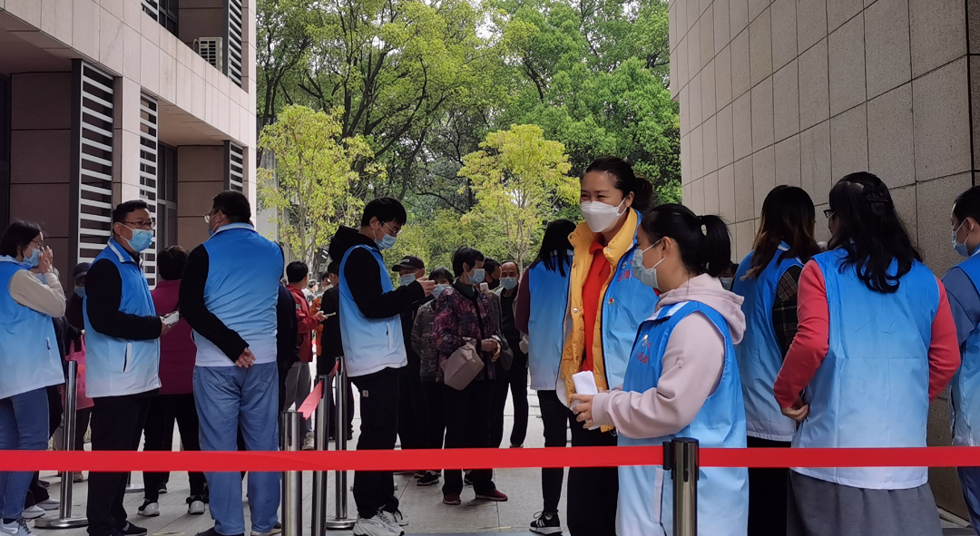 教工志愿者于25栋东门维持秩序