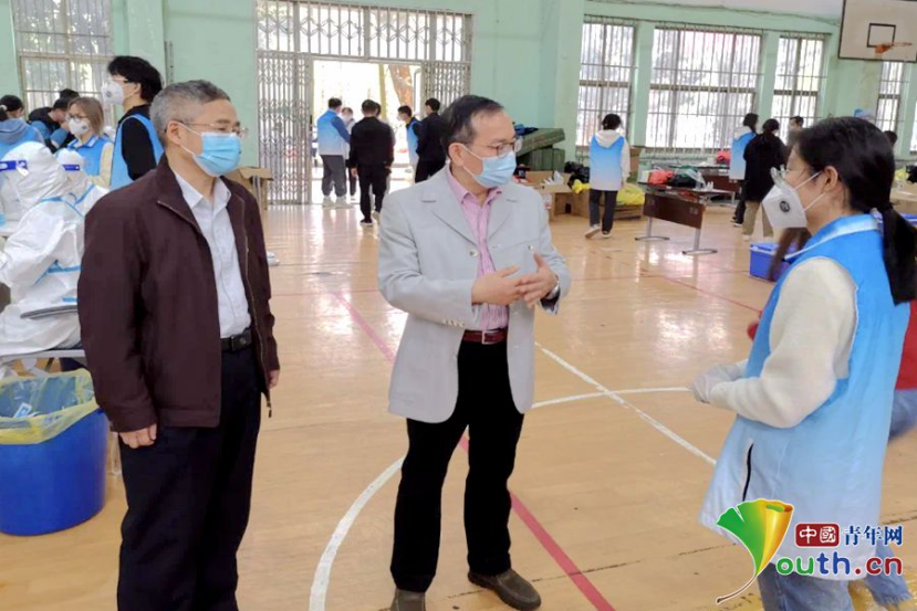 该校党委书记柳和生(中)检查督导疫情防控工作并看望奋战在一线的师生员工。陈君 摄