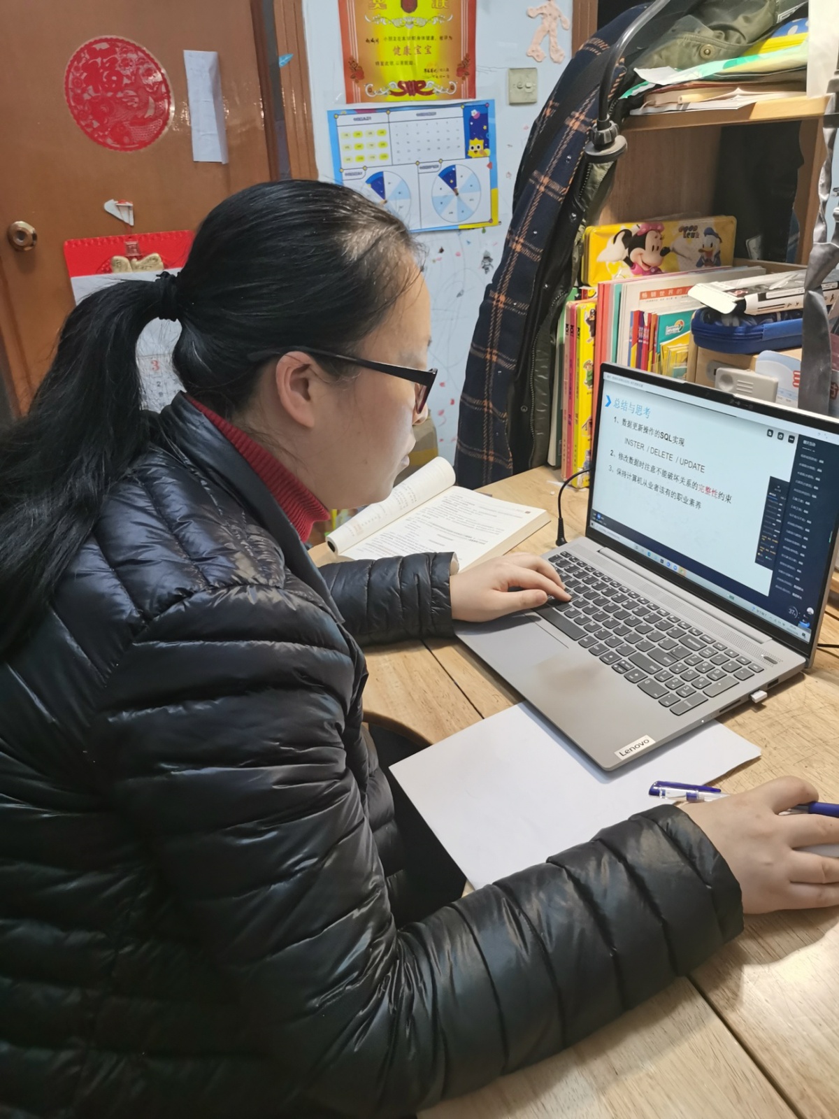 信息学院教师喻佳从2015年开始探索线上线下相结合的教学模式,经过2020年的线上教学经历,这一次的她更加得心应手。上课扣“111”,回答问题前先回答“我在”,听懂了扣“666”,再讲一遍扣“777”,用稿纸做习题拍照上传QQ群,下课扣“000”……为了保证教学质量,不让一个学生掉队,她想尽各种“招数”。这独特的数字表达也成了她专属的上课“仪式感”。“我平时就有每节课都录视频,第二天回看视频的习惯,学生们也很清楚我的习惯,所以对我的‘仪式’也很适应。”每次课程结束,她都会回看视频,观察学生的上课状态,认真撰写课后反思,改进授课方式。“老师真的很用心,教学难点会在课后专门录制视频,让我们更容易掌握。”
