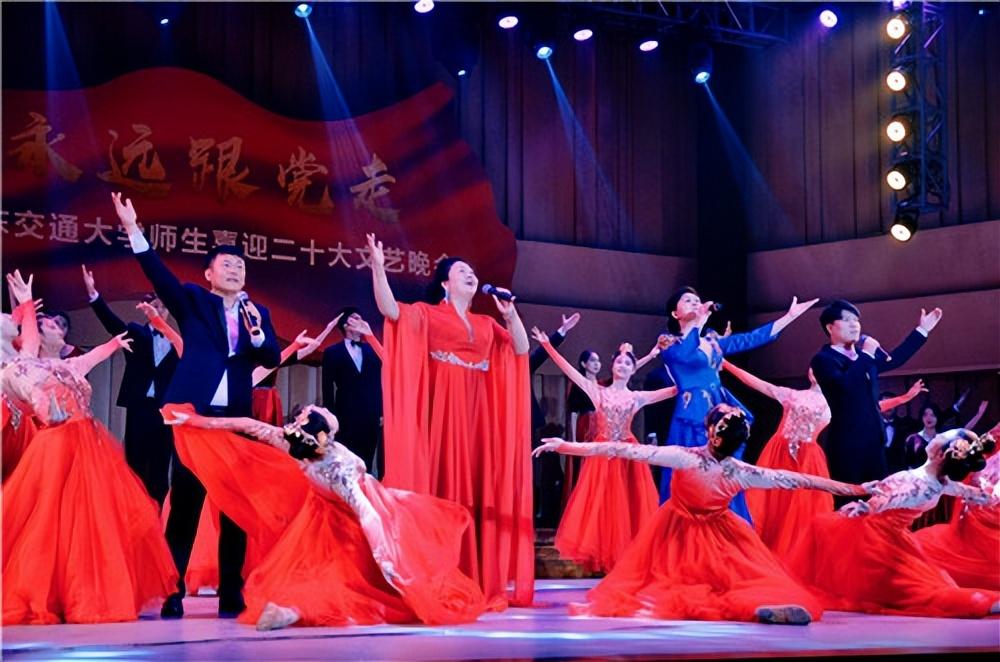 “华交出道在铁、出彩在铁、出路在铁、血脉中流淌着红色基因,精神上熔铸着‘铁’的特质”,《家国一体,命运与共》的宣讲将学校与国家紧紧联系在一起,展现了全校师生心系“国家事”、肩扛“国家责”、胸怀“两个大局”、牢记“国之大者”、立足“省之大业”、着眼“校之大计”,把满腔铁血熔铸于日常的坚守、镌刻在平凡的岗位、倾注进不懈地奋斗的坚定决心;“哪有什么岁月静好,不过是有人在替你负重前行”,原创舞蹈《我们这一代》通过片段式的表达,刻画了生活中平凡却伟大的人物——维护社会治安的警察、疫情中的逆行者医生、重庆山火中的凡人英雄消防员……当面临困难,他们总是不顾个人安危,为大家撑起一片天;情景表演《奉献》从细微处入手,体现小人物、大情感,小事件、大情怀的格局——一位女老师忍着病痛折磨坚守教学一线,尽心尽力为学生辅导,燃烧自己,照亮他人;二胡联奏《游击队之歌》 《骏马奔驰保边疆》、古筝重奏《我和我的祖国》、管乐重奏《钢铁洪流进行曲》曲调激昂、气势磅礴,回顾峥嵘岁月,从革命先烈精神中汲取奋进力量;“唱支山歌给党听,我把党来比母亲……”节目《党的光辉照我心》将场内气氛推向高潮,全场观众齐声合唱,把对党的祝福蕴含在深情的歌声中,全体师生对党的告白回荡在音乐厅,掌声和欢呼声经久不息。