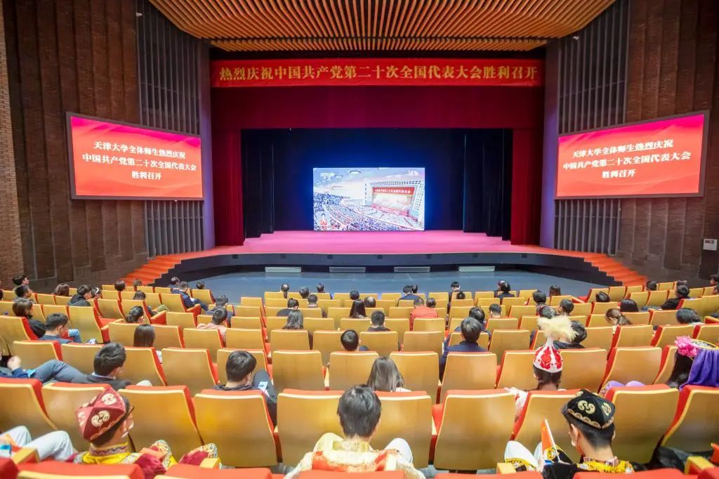 清华大学师生在大礼堂集中收看党的二十大开幕