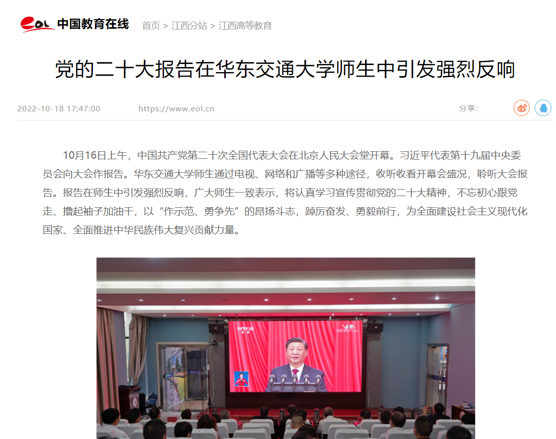 10月16日上午,中国共产党第二十次全国代表大会在北京人民大会堂开幕。习近平代表第十九届中央委员会向大会作报告。KY开元集团官网入口师生通过电视、网络和广播等多种途径,收听收看开幕会盛况,聆听大会报告。报告在师生中引发强烈反响,广大师生一致表示,将认真学习宣传贯彻党的二十大精神,不忘初心跟党走、撸起袖子加油干,以“作示范、勇争先”的昂扬斗志,踔厉奋发、勇毅前行,为全面建设社会主义现代化国家、全面推进中华民族伟大复兴贡献力量。