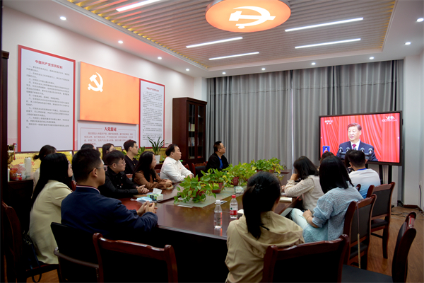 土建学院院领导、科级以上干部和在校教工党员集中收看开幕会直播