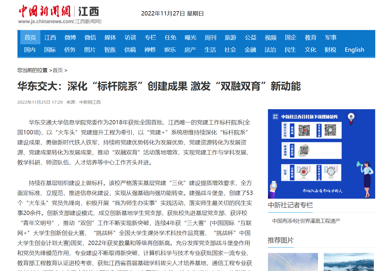【中国新闻网】华东交大:深化“标杆院系”创建成果 激发“双融双育”新动能