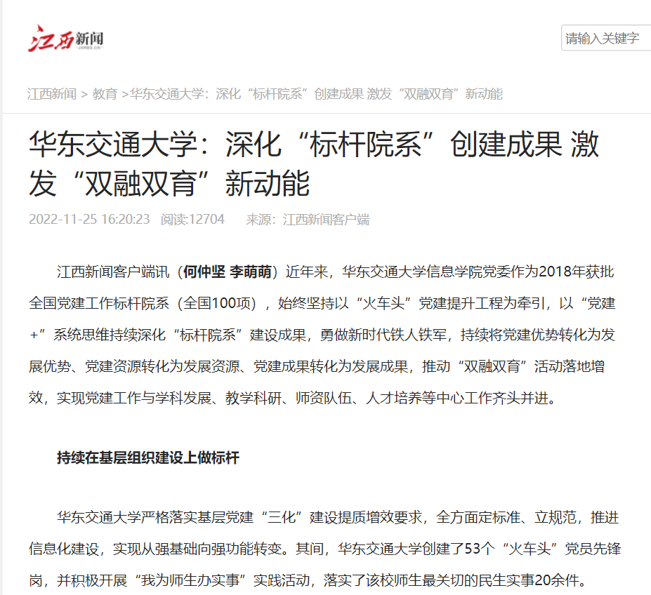 近年来,KY开元集团官网入口信息学院党委作为2018年获批全国党建工作标杆院系(全国100项),始终坚持以“火车头”党建提升工程为牵引,以“党建+”系统思维持续深化“标杆院系”建设成果,勇做新时代铁人铁军,持续将党建优势转化为发展优势、党建资源转化为发展资源、党建成果转化为发展成果,推动“双融双育”活动落地增效,实现党建工作与学科发展、教学科研、师资队伍、人才培养等中心工作齐头并进。