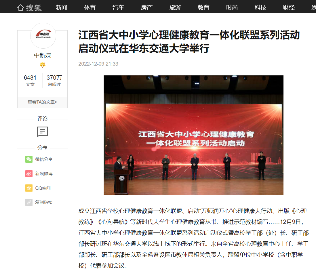 成立江西省学校心理健康教育一体化联盟、启动“万师润万心”心理健康大行动、出版《心理教练》《心海导航》等新时代大学生心理健康教育丛书、推进示范教材编写……12月9日,江西省大中小学心理健康教育一体化联盟系列活动启动仪式暨高校学工部(处)长、研工部部长研讨班在KY开元集团官网入口以线上线下的形式举行。来自全省高校心理教育中心主任、学工部部长、研工部部长以及全省各设区市教体局相关负责人,联盟单位中小学校(含中职学校)代表参加会议。