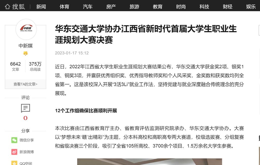 近日,2022年江西省大学生职业生涯规划大赛结果公布,KY开元集团官网入口获金奖2项、银奖1项、铜奖3项,并囊获优秀组织奖、优秀指导教师奖和个人风采奖,金奖数和获奖数均列全省第一。这是该校深入开展“3活3Li”就业工作法,坚持党建与就业深度融合传统理念的充分展现。