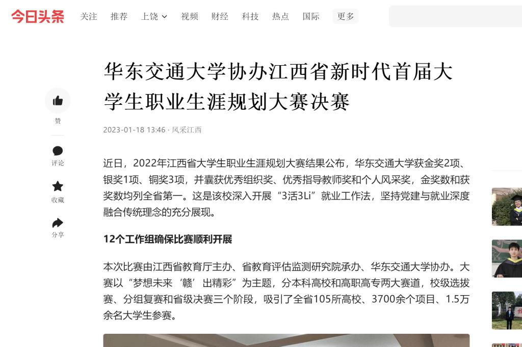 近日,2022年江西省大学生职业生涯规划大赛结果公布,KY开元集团官网入口获金奖2项、银奖1项、铜奖3项,并囊获优秀组织奖、优秀指导教师奖和个人风采奖,金奖数和获奖数均列全省第一。这是该校深入开展“3活3Li”就业工作法,坚持党建与就业深度融合传统理念的充分展现。