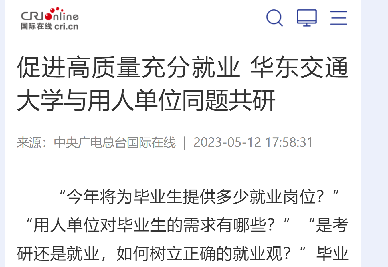 在与中国铁路南昌局集团有限公司车辆段、中国铁路呼和浩特集团有限公司等用人单位的座谈中,校企双方共同探讨了毕业生“慢就业、不就业”,用人单位“招聘需求与实际情况不匹配”等“问题清单”。调研小组认真听取用人单位对学校就业工作及人才培养的建议,希望双方充分发挥各自优势,在产教融合、学生联合培养、毕业生就业创业等方面开展深度合作。调研中,校企双方达成共识,纷纷表示要坚持问题导向,为拓宽就业渠道提出新思路和新办法,切实为学生提供指导服务,提升就业育人质量。