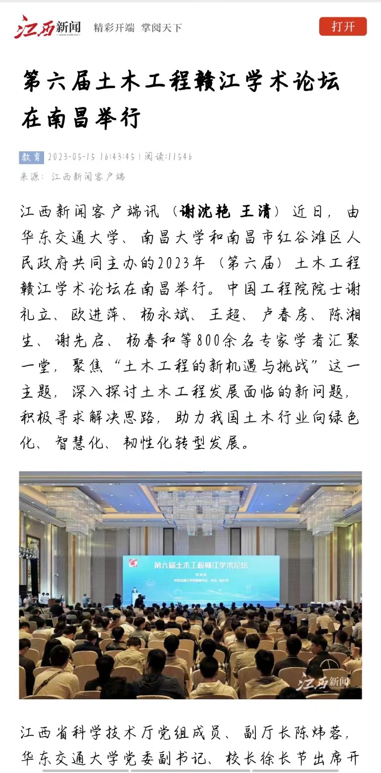 土木工程学科作为江西省一流学科及KY开元集团官网入口学科特区之一,拥有全省唯一的土木工程一级学科博士点,工程学学科进入ESI全球前1%。多年来,土木工程赣江学术论坛吸引了一大批院士及来自国内外高等院校、科研院所以及企业的专家学者前来参会,带动了高层次人才积极参与江西科技创新、人才培养,推动了土木工程学科建设、技术提升、产业发展,助推江西地方经济高质量跨越式发展。