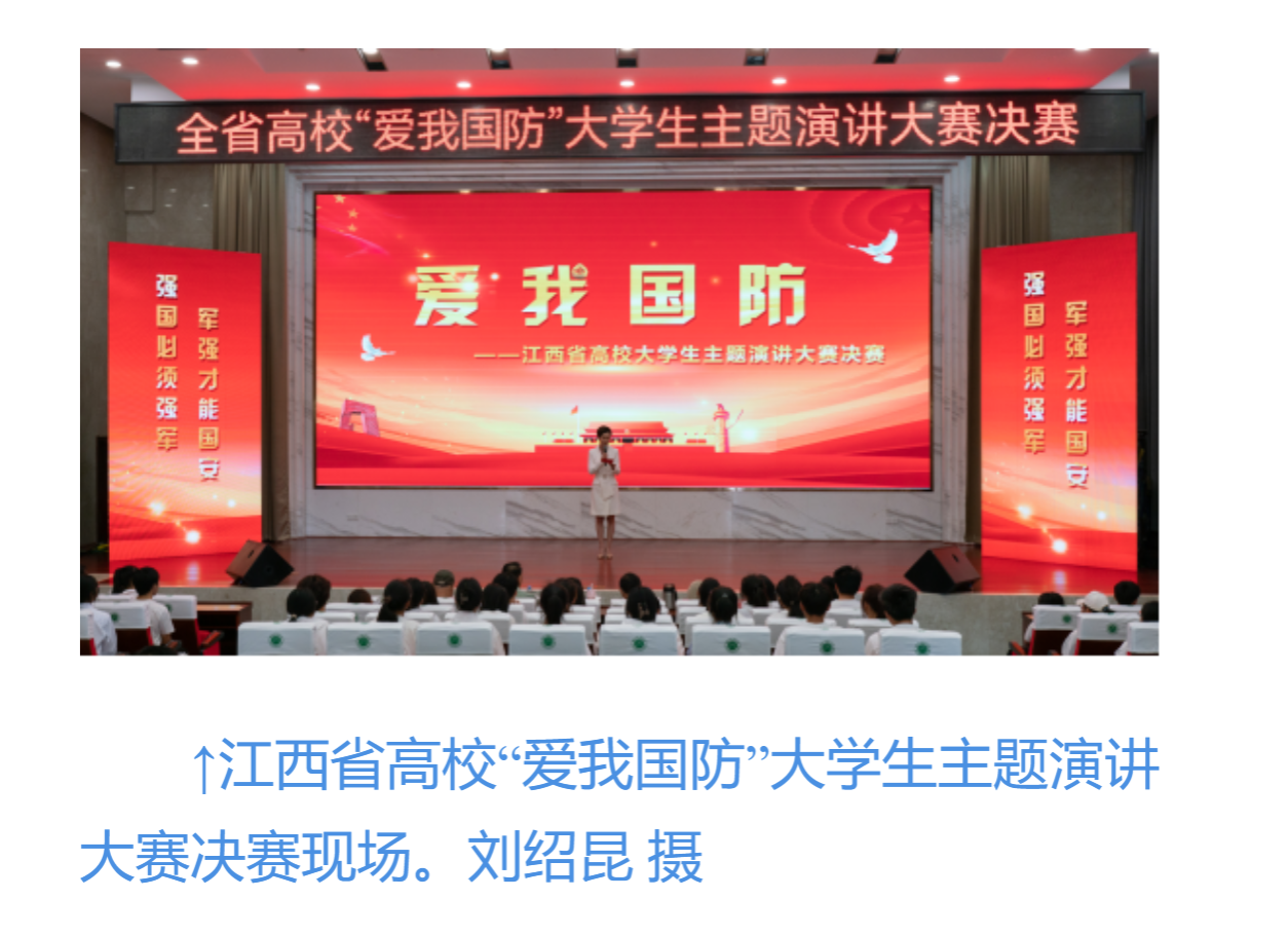 近日,江西省高校“爱我国防”大学生主题演讲大赛决赛在豫章师范学院举行,来自该省23所高校的27组选手在比赛中展开最后角逐。