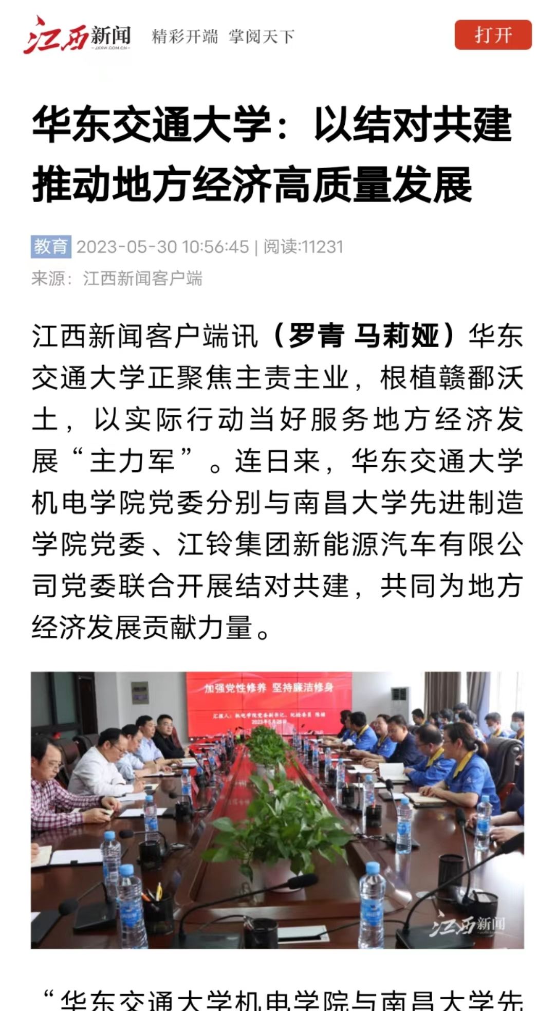 江西新闻客户端讯(罗青 马莉娅)KY开元集团官网入口正聚焦主责主业,根植赣鄱沃土,以实际行动当好服务地方经济发展“主力军”。连日来,KY开元集团官网入口机电学院党委分别与南昌大学先进制造学院党委、江铃集团新能源汽车有限公司党委联合开展结对共建,共同为地方经济发展贡献力量。