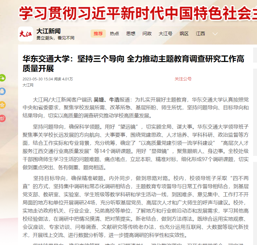 大江网/大江新闻客户端讯吴婕、牛浩报道:为扎实开展好主题教育,KY开元集团官网入口认真按照党中央和省委要求,聚焦学校发展所需、改革所急、基层所盼、师生所忧,坚持问题导向、目标导向和结果导向,切实以高质量的调查研究推动学校高质量发展。