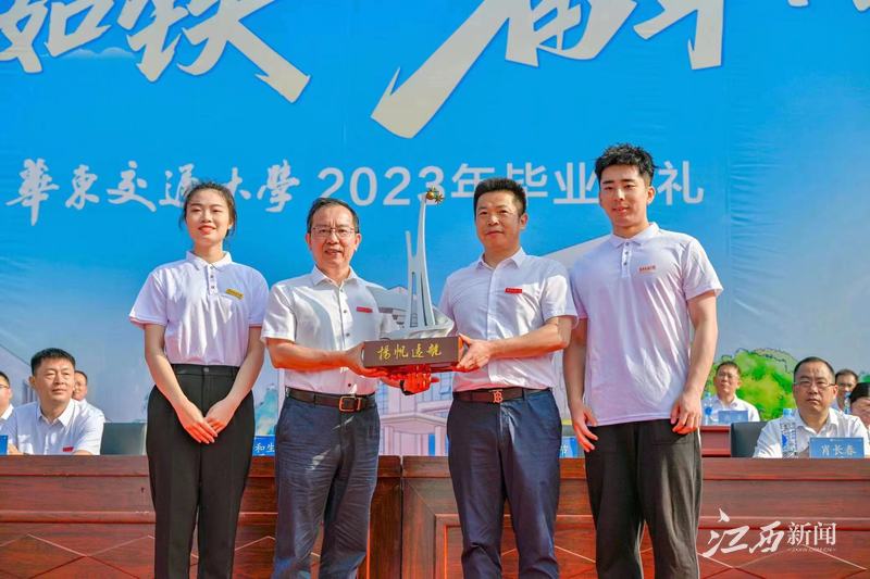 典礼上,柳和生为基层就业毕业生代表赠送毕业礼物,鼓励广大毕业生积极投身基层建功立业。柳和生、徐长节代表学校接受毕业生赠送母校的三维建模立体模型《扬帆远航》,这份献礼凝聚着2023届毕业生们的拳拳赤子心、浓浓母校情。