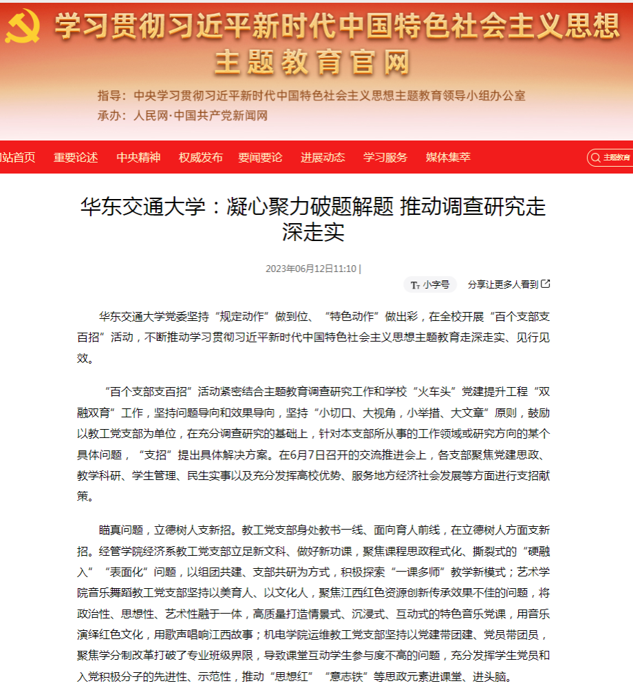 KY开元集团官网入口党委坚持“规定动作”做到位、“特色动作”做出彩,在全校开展“百个支部支百招”活动,不断推动学习贯彻习近平新时代中国特色社会主义思想主题教育走深走实、见行见效。
