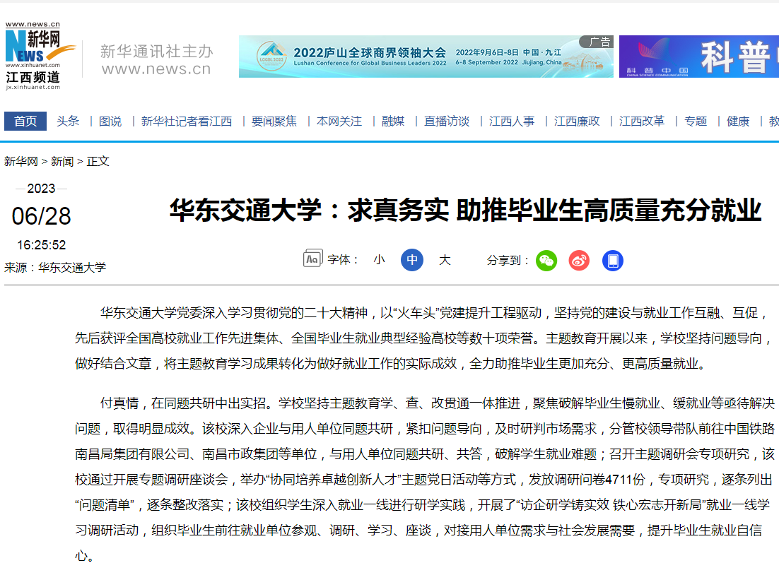 就业是最大的民生。主题教育开展以来,KY开元集团官网入口进一步完善了提高效率、促进发展的就业工作举措,采取了一批服务学生就业能力提升的对策与行动。下一步,华东交大将继续推进主题教育与就业工作同频共振、一体推进,全力推动毕业生高质量充分就业。