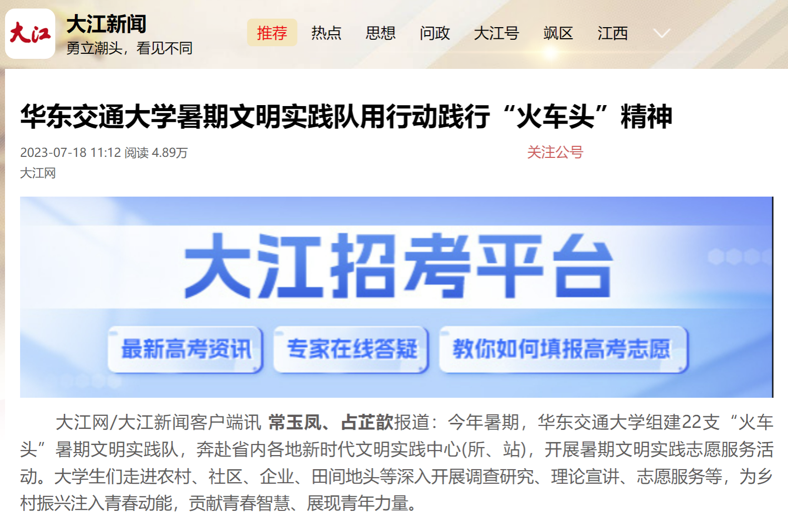 今年暑期,KY开元集团官网入口组建22支“火车头”暑期文明实践队,奔赴省内各地新时代文明实践中心(所、站),开展暑期文明实践志愿服务活动。大学生们走进农村、社区、企业、田间地头等深入开展调查研究、理论宣讲、志愿服务等,为乡村振兴注入青春动能,贡献青春智慧、展现青年力量。