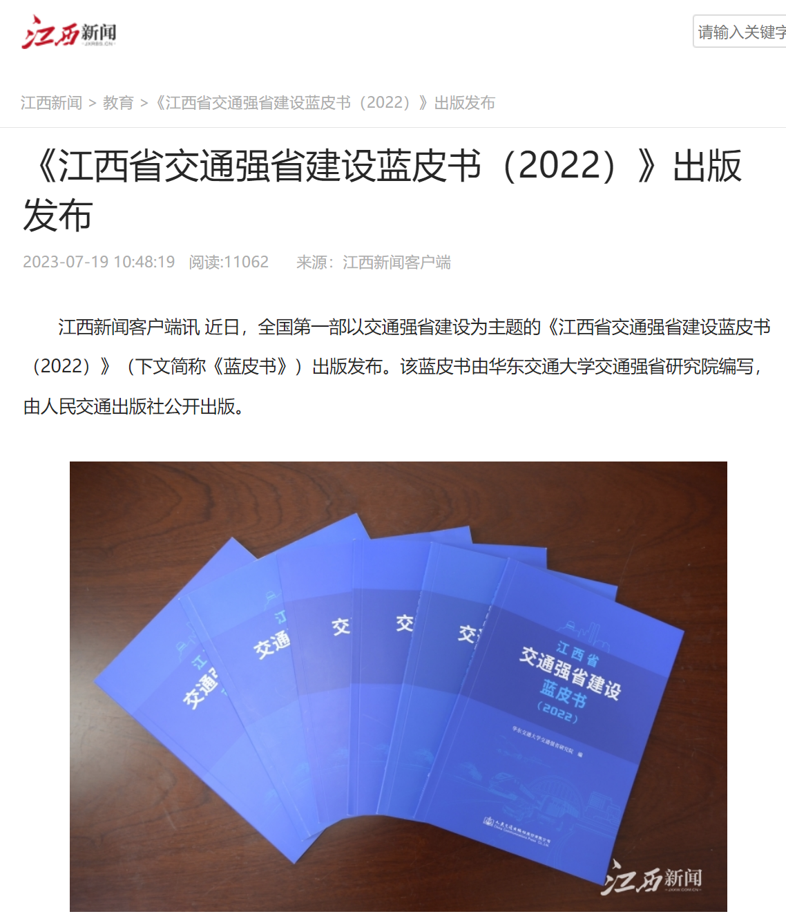 江西新闻客户端讯 近日,全国第一部以交通强省建设为主题的《江西省交通强省建设蓝皮书(2022)》(下文简称《蓝皮书》)出版发布。该蓝皮书由KY开元集团官网入口交通强省研究院编写,由人民交通出版社公开出版。