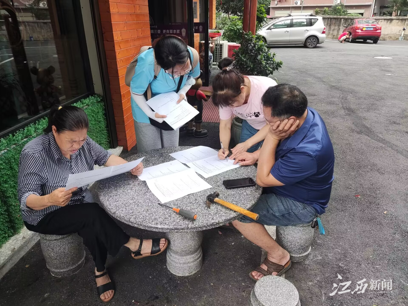在领略文旅融合中,见证乡村振兴。通过实地走访、邀请当地百姓填写调查问卷等形式,实践队成员对湘东区过去十年的发展有了更加深入的了解。在湘东区湘东镇江口村村民委员会主任凌守富的带领下,实践队成员深入江口村调研,走访“大地乡居-美村六纪”“零799艺术区”等江口村现有的旅游产业。在调研走访中,实践队成员以江口村为范本,将所学所思与基层实际密切结合,更加深刻地认识到乡村振兴战略的重要性。