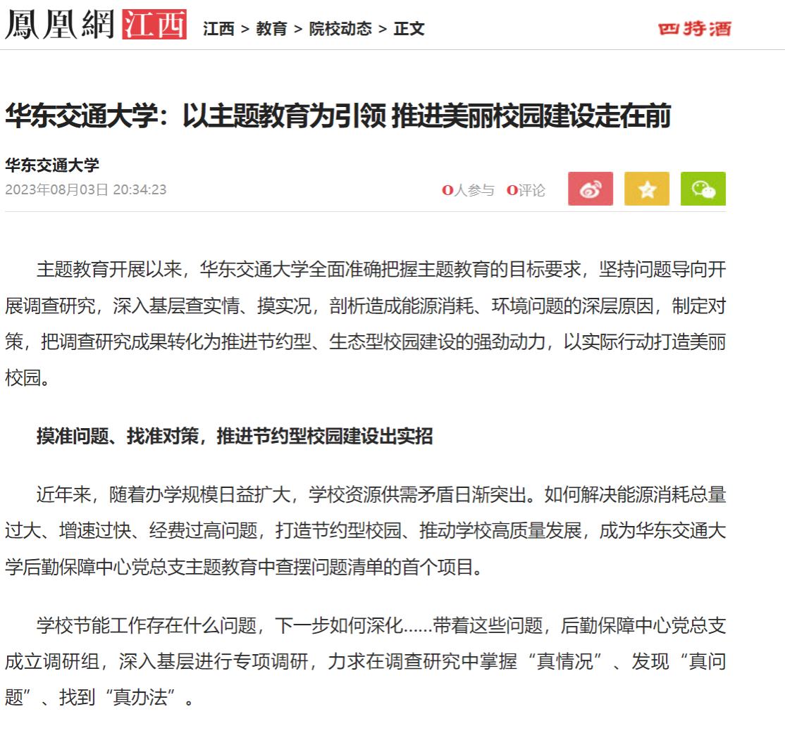 主题教育开展以来,KY开元集团官网入口全面准确把握主题教育的目标要求,坚持问题导向开展调查研究,深入基层查实情、摸实况,剖析造成能源消耗、环境问题的深层原因,制定对策,把调查研究成果转化为推进节约型、生态型校园建设的强劲动力,以实际行动打造美丽校园。