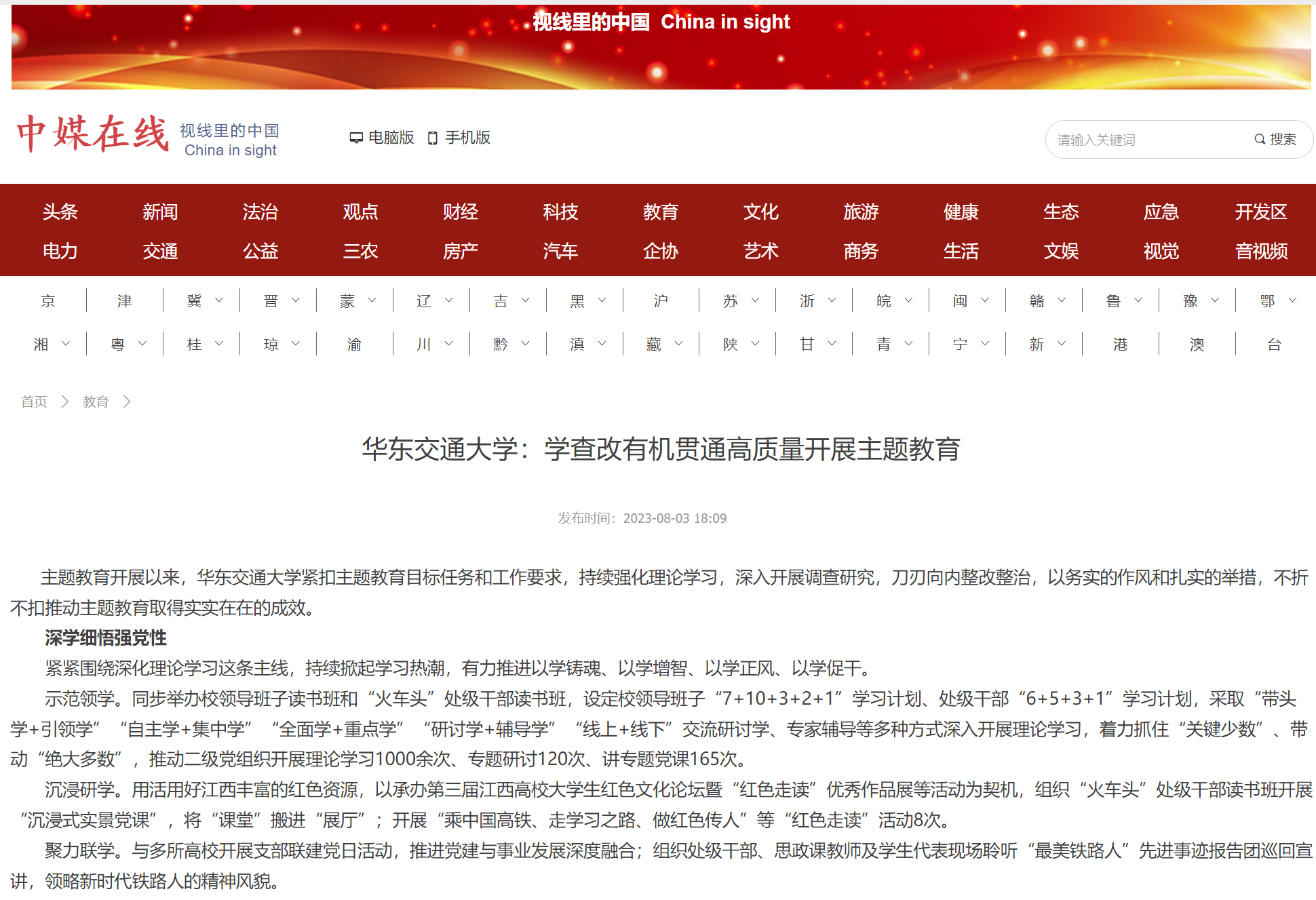 校级层面,校领导、校党委委员立足主责主业、聚焦大事要事,围绕党建思政、人才培养、学科科研、政治监督等方面,确定了“以高质量党建引领一流学科建设”“高层次人才服务江西交通行业高质量发展”等13个调研领题和3个典型案例解剖式调研课题,共开展各类调研82次,形成调研报告16篇;提出工作改进措施75条,形成13条调研成果转化运用、59项具体转化举措。