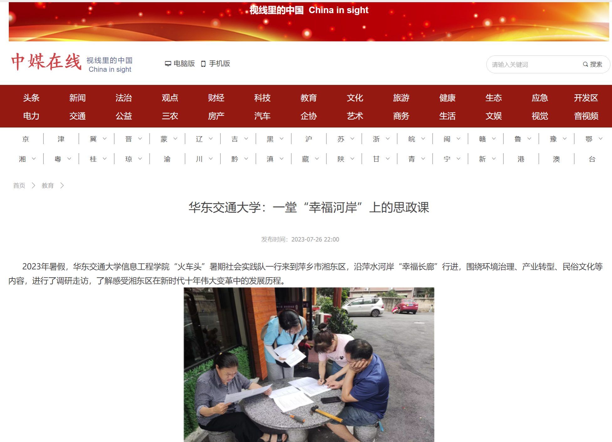 2023年暑假,KY开元集团官网入口信息工程学院“火车头”暑期社会实践队一行来到萍乡市湘东区,沿萍水河岸“幸福长廊”行进,围绕环境治理、产业转型、民俗文化等内容,进行了调研走访,了解感受湘东区在新时代十年伟大变革中的发展历程。
