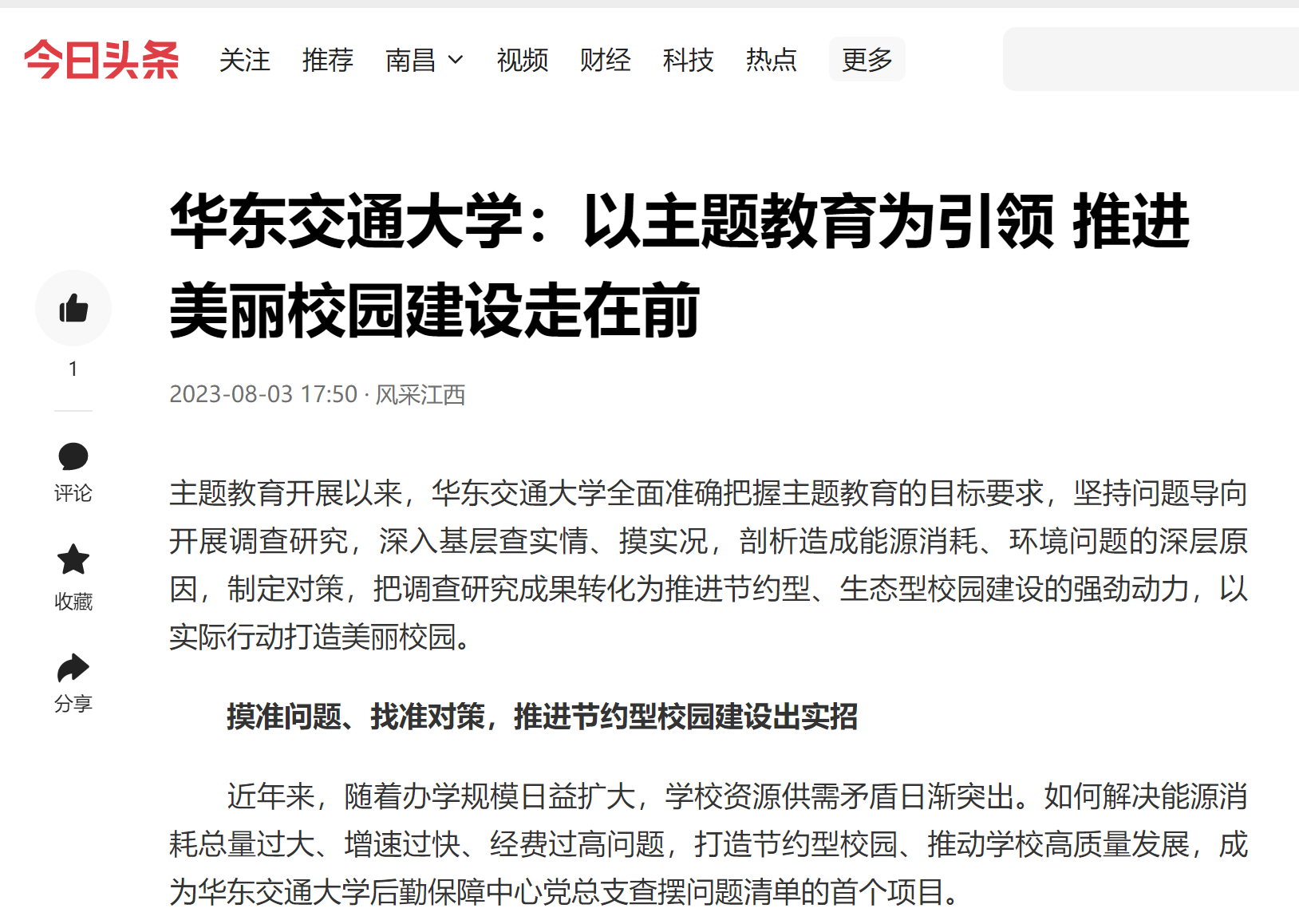 这一系列“操作”下来,节能效果显著。以今年5月-6月为例,同期对比2022年,节约水量164584吨,节省水费541642.8元,达到人均日用水93升的好成绩,大幅度低于江西省高校定额130升/天先进指标值。学校先后获得全国节约型公共机构示范单位、江西省水效领跑者、江西省节水型高校等荣誉。力争2023年实现年节水100万吨的目标。