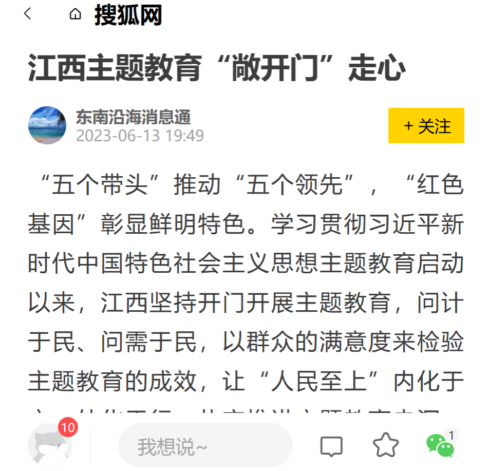 “五个带头”推动“五个领先”,“红色基因”彰显鲜明特色。学习贯彻习近平新时代中国特色社会主义思想主题教育启动以来,江西坚持开门开展主题教育,问计于民、问需于民,以群众的满意度来检验主题教育的成效,让“人民至上”内化于心、外化于行,扎实推进主题教育走深、走实、走心。