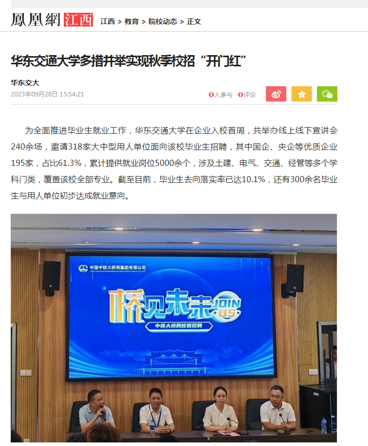 华东交大还将搭建更多校地企交流平台,精准开展供需对接,扎实推进就业服务工作,助力广大毕业生实现早就业、就好业。