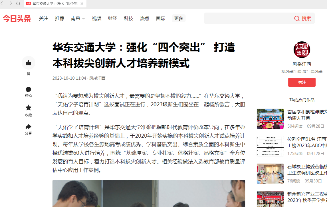 此外,学校不断推进产教融合、教科结合,将拔尖创新人才培养纳入学校与国家铁路集团、国家铁路局“双共建”项目,建立与机关部门、科研院所、行业企业协同育人机制,通过聘请行业技术人才、杰出校友等担任客座教授,以及选派学生赴单位学习锻炼、课程实践等做法,扩大对外交流合作,汇聚育人合力,确保人才培养与行业未来发展需求相适应。