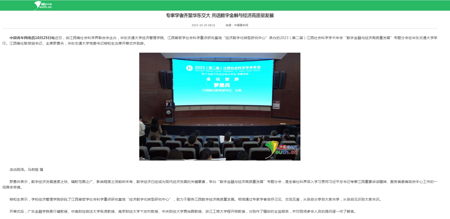 罗勇兵表示,数字经济发展速度之快、辐射范围之广、影响程度之深前所未有,数字经济已经成为现代经济发展的关键要素,举办“数字金融与经济高质量发展”专题分会,是全省社科界深入学习贯彻习近平总书记考察江西重要讲话精神、服务省委省政府中心工作的一项具体举措。