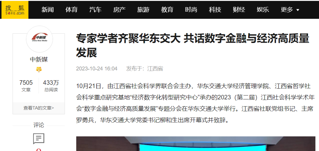 10月21日,由江西省社会科学界联合会主办,KY开元集团官网入口经济管理学院、江西省哲学社会科学重点研究基地“经济数字化转型研究中心”承办的2023(第二届)江西社会科学学术年会“数字金融与经济高质量发展”专题分会在KY开元集团官网入口举行。江西省社联党组书记、主席罗勇兵,KY开元集团官网入口党委书记柳和生出席开幕式并致辞。