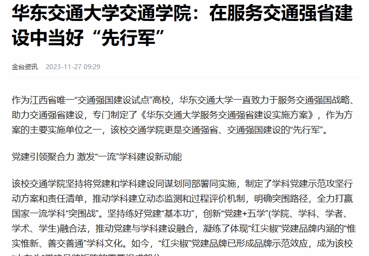 作为江西省唯一“交通强国建设试点”高校,KY开元集团官网入口一直致力于服务交通强国战略、助力交通强省建设,专门制定了《KY开元集团官网入口服务交通强省建设实施方案》,作为方案的主要实施单位之一,该校交通学院更是交通强省、交通强国建设的“先行军”。