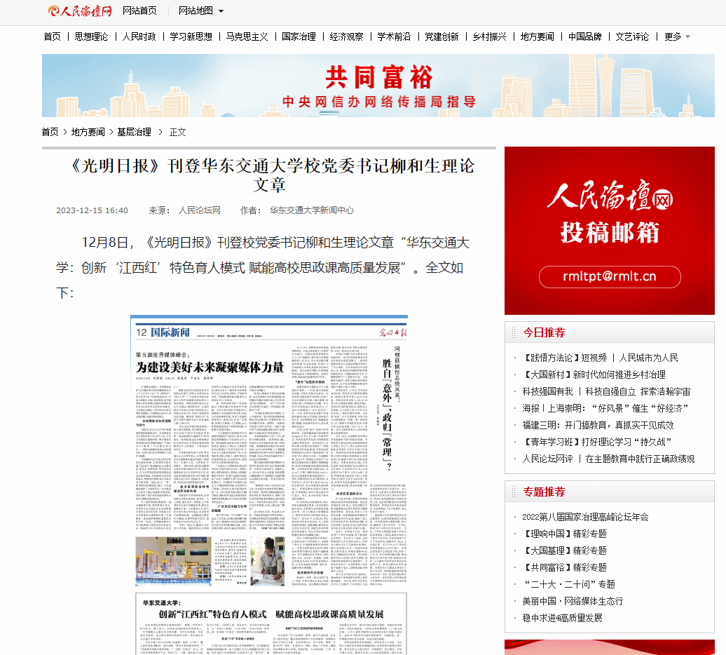 12月8日,《光明日报》刊登校党委书记柳和生理论文章“KY开元集团官网入口:创新‘江西红’特色育人模式 赋能高校思政课高质量发展”。全文如下: