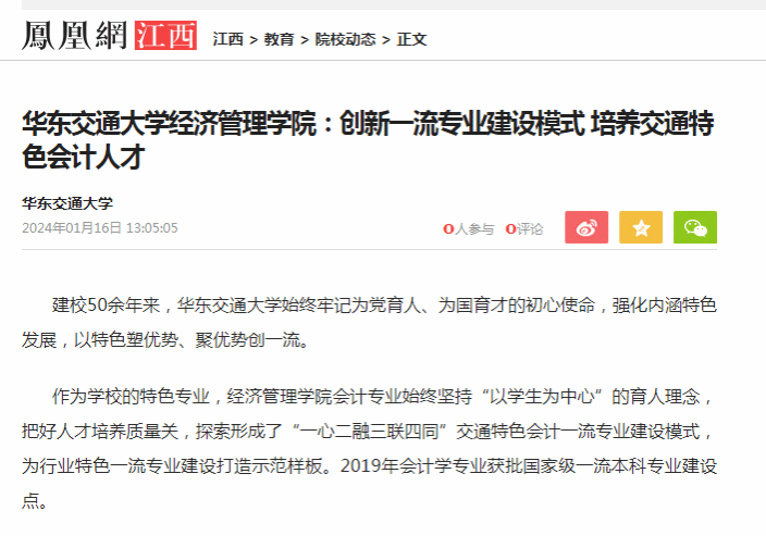 作为学校的特色专业,经济管理学院会计专业始终坚持“以学生为中心”的育人理念,把好人才培养质量关,探索形成了“一心二融三联四同”交通特色会计一流专业建设模式,为行业特色一流专业建设打造示范样板。2019年会计学专业获批国家级一流本科专业建设点。