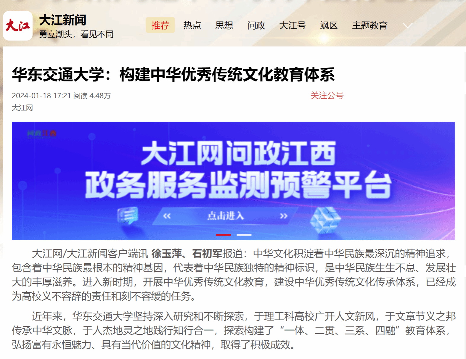 近年来,KY开元集团官网入口坚持深入研究和不断探索,于理工科高校广开人文新风,于文章节义之邦传承中华文脉,于人杰地灵之地践行知行合一,探索构建了“一体、二贯、三系、四融”教育体系,弘扬富有永恒魅力、具有当代价值的文化精神,取得了积极成效。