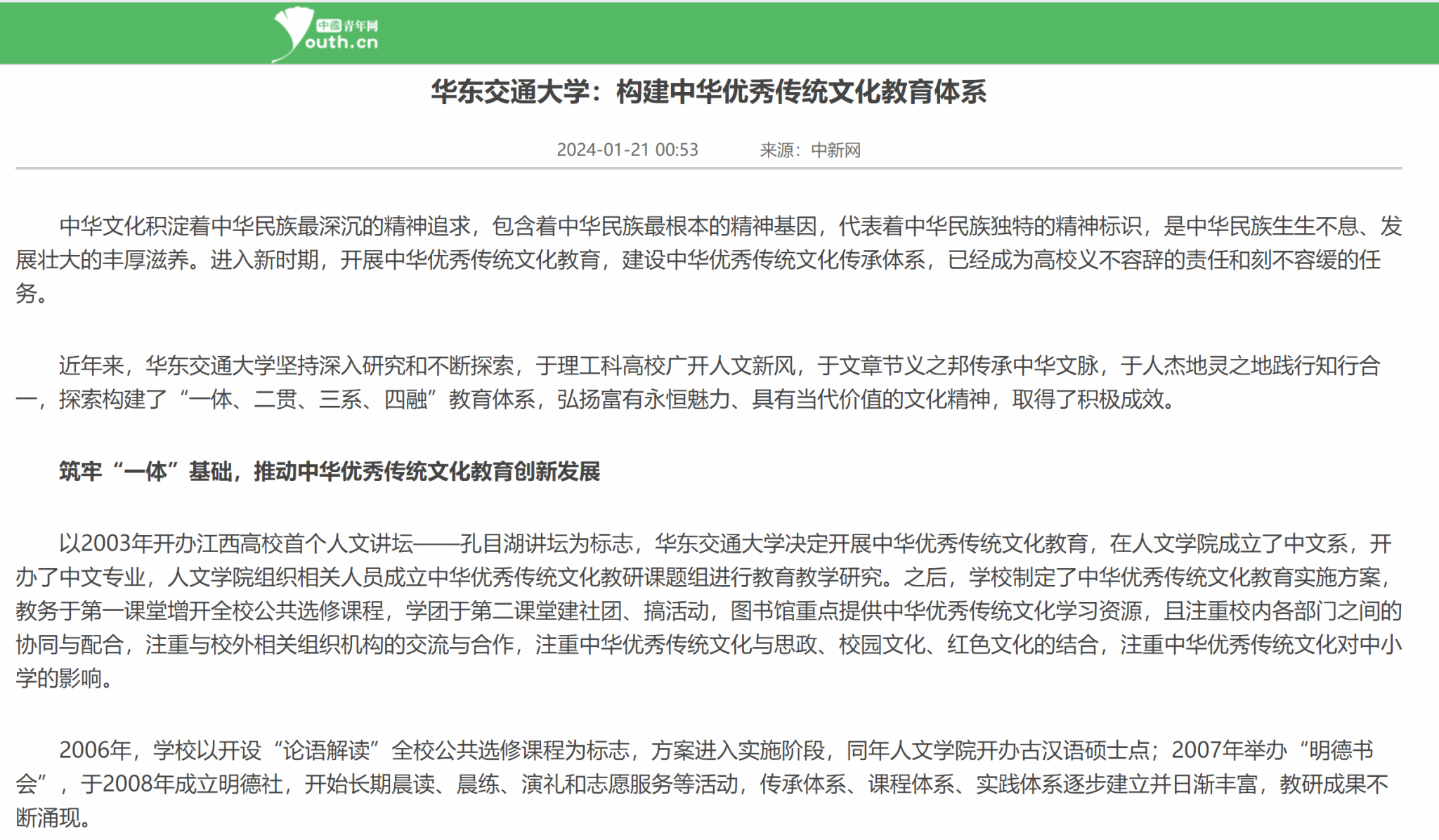 近年来,KY开元集团官网入口坚持深入研究和不断探索,于理工科高校广开人文新风,于文章节义之邦传承中华文脉,于人杰地灵之地践行知行合一,探索构建了“一体、二贯、三系、四融”教育体系,弘扬富有永恒魅力、具有当代价值的文化精神,取得了积极成效。